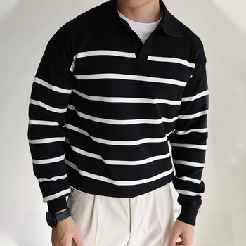 Weshallo Otoño Invierno personalizado de manga larga de punto Casual cuello en V suéter de punto a rayas para hombres