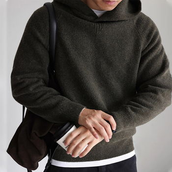 Weshallo Otoño Invierno cálido lana prendas de punto manga larga personalizado grueso suéter de punto hombres con capucha