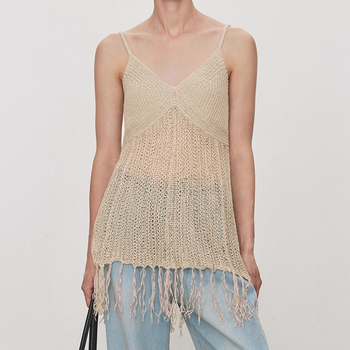 Weshallo personalizado verano sin mangas borla vestido ahueca hacia fuera los vestidos de algodón Slip para las mujeres